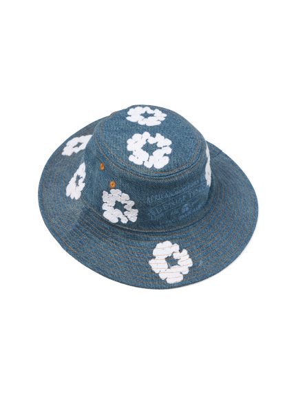 Denim Cotton Wreath Bucket Hat Washed Indigo