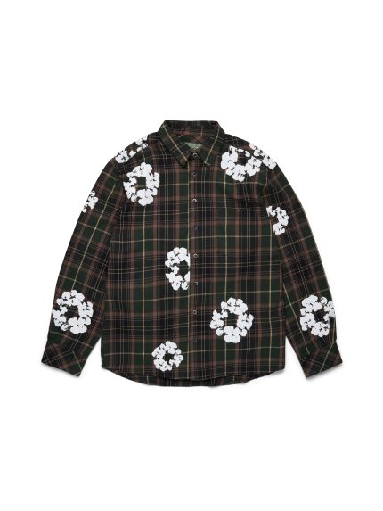 Cotton Wreath Flannel Shirt Green Plaid