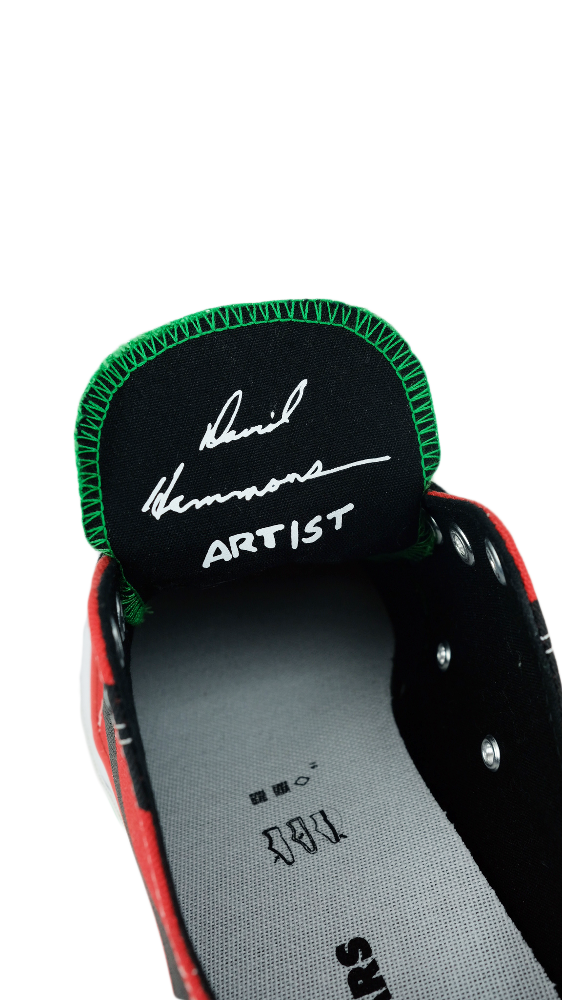 - David Hammon’s signature featured on the inside of the tongue.