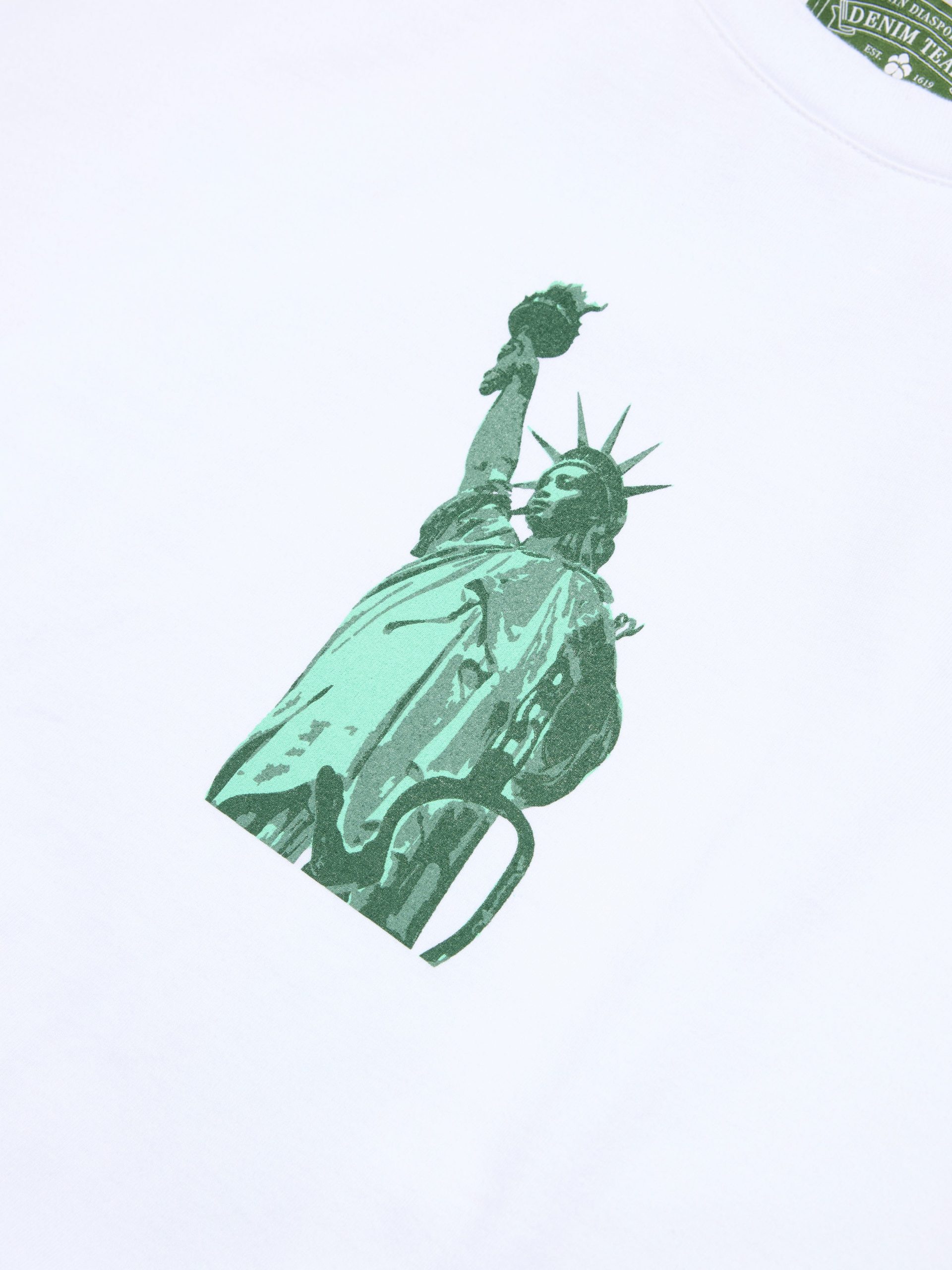 Produced in 100% cotton and cut to a regular fit, our Libertas Abolition SS Tee features a screenprinted graphic of the ‘Libertas’ Lady Liberty. In her left hand, she holds shackles, as originally intended by sculptor Frédéric-Auguste Bartholdi to commemorate the end of slavery; a monument intentionally built to celebrate emancipation, relocated to her feet and obscured before completion following American funders’ rejection of Bartholdi’s vision.